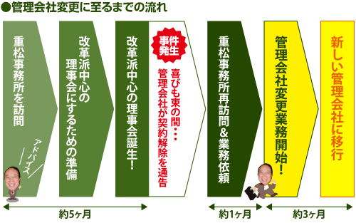 まさかこんなに早く重松先生にお願いすることになるとは思っていませんでしたが、新しい管理会社を3ヶ月以内に選ばなければならないので、スケジュール的には大変でした。